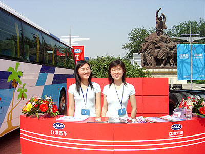 江淮汽車公司認(rèn)為,兩位大學(xué)生接受能力強(qiáng),經(jīng)過幾個(gè)小時(shí)培訓(xùn)后對(duì)產(chǎn)品有一定了解,能單獨(dú)應(yīng)付一般觀眾提出的問題,企業(yè)里難以找到這樣充滿青春活力、親和能力特強(qiáng)的人。他們可愛、甜美的微笑會(huì)讓人忘記烈日下的煩躁,一下子接近了溝通距離。