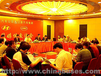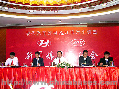 6月15日,安徽江淮汽車(chē)公司與韓國(guó)現(xiàn)代汽車(chē)公司在長(zhǎng)城飯店聯(lián)合舉行的新聞發(fā)布會(huì)。會(huì)上,人們?cè)俅误w驗(yàn)到江淮與現(xiàn)代公司一種魚(yú)水般的合作關(guān)系和唇齒相依的發(fā)展情結(jié)。