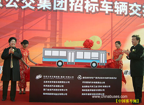 此次招標(biāo)車交接儀式,是由北京公交集團(tuán)主辦,建設(shè)部科技委城市車輛專家委員會協(xié)辦,并得到了市委市政府、市交通委、市財政、市環(huán)保和市各委辦局的關(guān)心和支持。