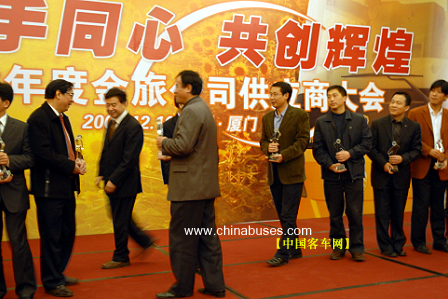 會(huì)議開幕由金旅公司副總經(jīng)理張致平致歡迎辭并通報(bào)2006年的生產(chǎn)經(jīng)營狀況和今后的發(fā)展規(guī)劃;金旅公司采購部經(jīng)理葉宇亮總結(jié)2006年金旅公司配套工作、表彰06年度優(yōu)秀供應(yīng)商。綦江齒輪傳動(dòng)有限公司2006年所供金旅的各類變速器總成同比增長18%,大中型客車占有率達(dá)到70%,憑借高品質(zhì)的產(chǎn)品以及優(yōu)質(zhì)的售后服務(wù)榮獲了廈門金旅公司2006年度的優(yōu)秀供應(yīng)商。