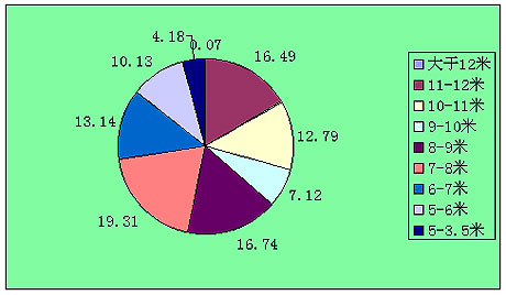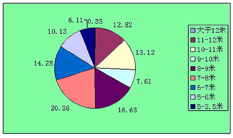 2、05年1~4月8~9米產(chǎn)品所占比例為16.74%,處于第二,06年1~4月份8~9米產(chǎn)品占的比例為16.63%,盡管比例有所下降,但仍然處于第二。