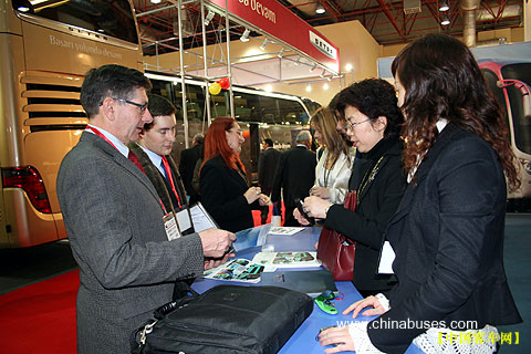來自世界各地的客車行業(yè)人士到廈門金龍展臺仔細(xì)詢問相關(guān)企業(yè)和產(chǎn)品信息