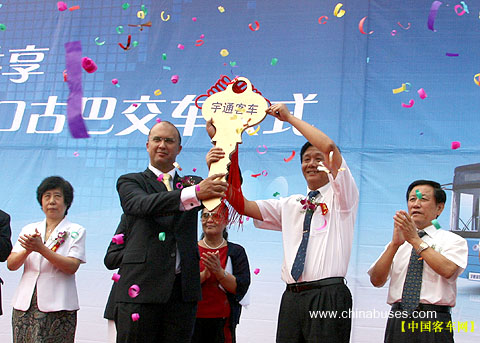 9月24日上午,宇通集團(tuán)隆重舉行了"城市公交 世界共享·宇通出口古巴BRT客車交車儀式",古巴駐華大使卡洛斯先生從宇通集團(tuán)總裁湯玉祥手中接過(guò)象征性的車鑰匙,隨后200輛18米BRT公交車緩緩駛出宇通工業(yè)園,赴連云港待發(fā)。據(jù)記者了解,這也是國(guó)內(nèi)BRT客車首次批量出口海外,為我國(guó)高檔客車沖擊海外市場(chǎng)奠定了基礎(chǔ)。