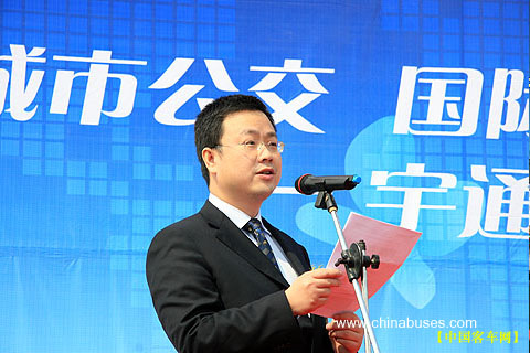 宇通客車海外市場(chǎng)總監(jiān)秦?fù)P文主持交車儀式
