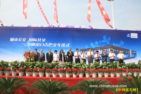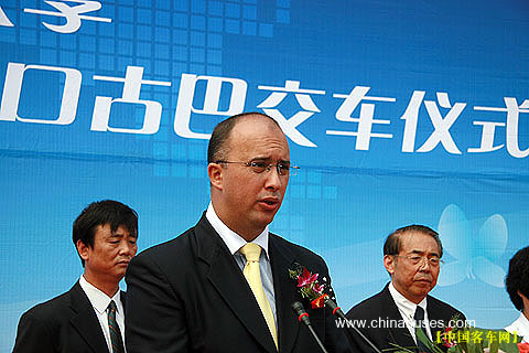 宇通集團(tuán)總裁湯玉祥、古巴駐華大使館大使克洛斯先生、河南省人大、省外事僑務(wù)辦、鄭州市副市長(zhǎng)、省市商務(wù)廳、海關(guān)等領(lǐng)導(dǎo),以及中國(guó)機(jī)電產(chǎn)品進(jìn)出口商會(huì)、中國(guó)汽車工業(yè)協(xié)會(huì)、美國(guó)能源基金會(huì)等代表出席了儀式,共同見(jiàn)證2007年宇通簽訂的中國(guó)客車出口最大批量訂單,首批順利交付古巴。