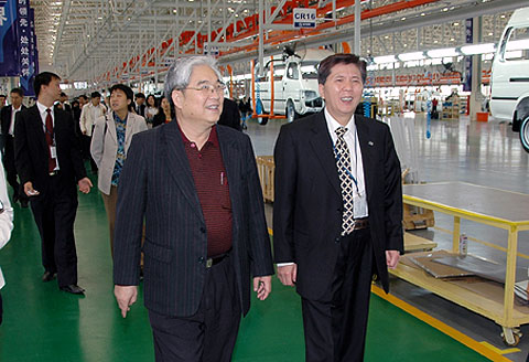 大金龍總經(jīng)理江世煌陪同院士專家參觀生產(chǎn)車間