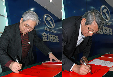 郭孔輝院士揮筆寫下:"創(chuàng)新前行,再創(chuàng)輝煌",鼓勵(lì)大金龍堅(jiān)持技術(shù)創(chuàng)新,引領(lǐng)行業(yè)發(fā)展。林尚揚(yáng)院士也留下了"持續(xù)創(chuàng)新,駛向世界"的題詞,希望大金龍不斷在技術(shù)方面創(chuàng)新,打造自主品牌,拓展國際市場(chǎng)。專家們還寫下了"專注專業(yè),成就中國客車專家"、"中國金龍騰飛世界"等題詞,齊贊大金龍?jiān)诔掷m(xù)創(chuàng)新方面的努力和取得的成績(jī)。