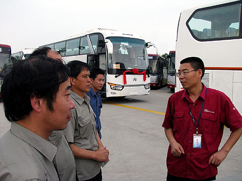 大金龍工作人員在做發(fā)車前的最后準(zhǔn)備