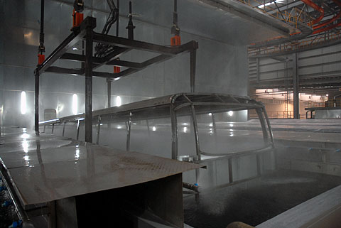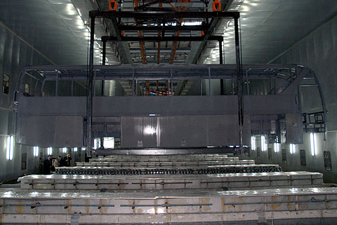 記者了解到,國(guó)內(nèi)轎車和小型客車生產(chǎn)一般都采用陰極電泳,國(guó)外很多客車企業(yè)也采用全車陰極電泳。由于陰極電泳整套流程相當(dāng)復(fù)雜,客車整車不同部件、材料對(duì)電泳的要求各不相用,大型客車所需要的電泳池又比較大,一次投入的電泳漆很多,如果沒有比較大的產(chǎn)銷量做支撐,一般企業(yè)無法承受電泳線非常高的運(yùn)營(yíng)費(fèi)用和管理費(fèi)用。因此國(guó)內(nèi)的客車企業(yè)還沒有這種大客車的全過程整車浸入式的陰極電泳線。