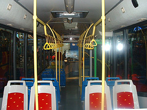 對于預(yù)計(jì)售價(jià)達(dá)到78.8萬的這款城市客車,全承載技術(shù)并不是其唯一的長處。由于選配了美國德拉的前橋,使得整車一級踏步達(dá)到了360mm,車內(nèi)前門與中門之間實(shí)現(xiàn)了無臺階,此外,該車標(biāo)準(zhǔn)配置中也已經(jīng)包含了ABS、ASR以及自動變速箱。戴慶生部長介紹說該款客車目前把上海作為主要的目標(biāo)市場,相信會受到上海公交系統(tǒng)的歡迎。