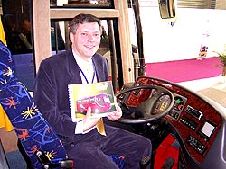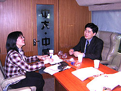 | 總裁徐連寬在豪華客車內(nèi)接受《中國汽車報(bào)》資深記者馮淑娟獨(dú)家專訪。 |