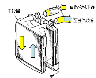但是事物總有矛盾性,空氣壓力的提高就是空氣密度的提高,空氣密度的提高必然會使空氣溫度也同時增高,這如同給輪胎打氣時泵會發(fā)熱一樣。發(fā)動機(jī)渦輪增壓器的出風(fēng)口溫度也會隨著壓力增大而升高,溫度提高反過來會限制空氣密度的提高,要進(jìn)一步提高空氣密度就要降低增壓空氣的溫度。據(jù)實驗顯示,在相同的空燃比條件下,增壓空氣溫度每下降10攝氏度,柴油機(jī)功率能提高3%~5%,還能降低排放中的氮氧化合物NOx,改善發(fā)動機(jī)的低速性能。因此,也就產(chǎn)生了中間冷卻技術(shù)。