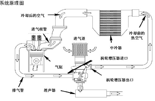 發(fā)動機(jī)是靠燃料在汽缸內(nèi)燃燒作功來產(chǎn)生功率的,輸入的燃料量受到吸入汽缸內(nèi)空氣量的限制,所產(chǎn)生的功率也會受到限制,如果發(fā)動機(jī)的運行性能已處于最佳狀態(tài),再增加輸出功率只能通過壓縮更多的空氣進(jìn)入汽缸來增加燃料量,提高燃燒作功能力。在目前的技術(shù)條件下,渦輪增壓器是惟一能使發(fā)動機(jī)在工作效率不變的情況下增加輸出功率的機(jī)械裝置。