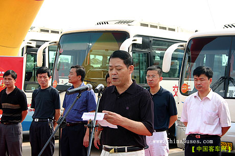 在燃油價(jià)格持續(xù)上調(diào),運(yùn)營成本不斷攀升的時(shí)刻,我國公路客運(yùn)業(yè)遇到了前所未有的巨大挑戰(zhàn),節(jié)油呼聲一浪高過一浪,選擇節(jié)油型營運(yùn)客車,提高節(jié)油管理水平,已成為客運(yùn)業(yè)經(jīng)營中的重中之重。急用戶之所急,想用戶之所想,8月25日,"節(jié)油萬里行--江淮·現(xiàn)代客車在行動(dòng)"湖北黃石站在黃石交通運(yùn)輸集團(tuán)隆重啟動(dòng),黃石交運(yùn)集團(tuán)張茂松董事長、向守貴總經(jīng)理、陶蕤副總經(jīng)理以及江淮客車銷售總公司張雁飛常務(wù)副總經(jīng)理、王蘇榮副總經(jīng)理、湖北分公司葉憲法經(jīng)理等主要領(lǐng)導(dǎo)參加了啟動(dòng)儀式,啟動(dòng)儀式由黃石交運(yùn)集團(tuán)快速公司陳金橋經(jīng)理主持。