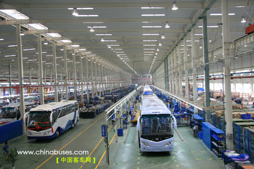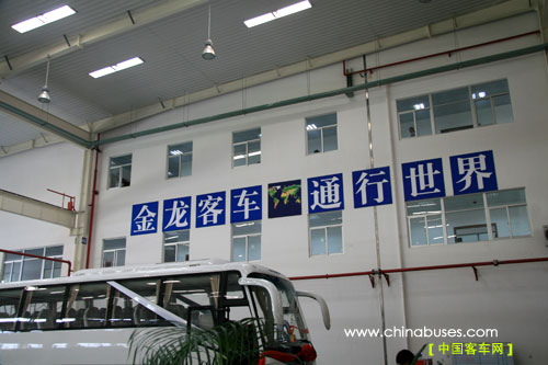 從生產(chǎn)車間的墻上一句"金龍客車,通行世界!"的廣告語,已讓我們看見了中國客車國際競爭力的希望以及大金龍走向世界的決心