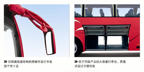 側(cè)圍的設(shè)計靈感來自于金龍標(biāo)志"L"和經(jīng)典概念的月亮彎設(shè)計。該設(shè)計打破客車行業(yè)傳統(tǒng)的側(cè)圍裝飾方式,取不斷翻騰的波浪之意來詮釋金龍的不斷創(chuàng)新,引領(lǐng)潮流,同時猶如浩浩夜空中的一輪彎月,寧靜而舒適。一彎月亮彎使得前圍和側(cè)圍渾然一體。汽車后圍燈具的設(shè)計充分呼應(yīng)前圍,造型虛實變幻,使整車效果更為完美。