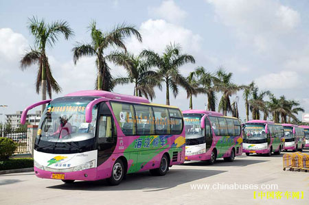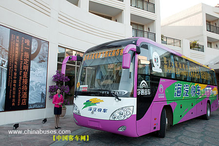 美麗的海濱城市三亞,正在沉浸在“兩會(huì)一賽”的歡樂當(dāng)中。宇通客車作為本次活動(dòng)的指定接待用車,不僅在車身外觀上添置了醒目的主題標(biāo)語(yǔ),而且各項(xiàng)接待工作排列緊張有序,使眾多電影界人士乘坐起來相當(dāng)舒適。目前,宇通16臺(tái)豪華大巴仍在緊鑼密鼓地嘉賓接待工作中。