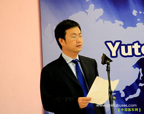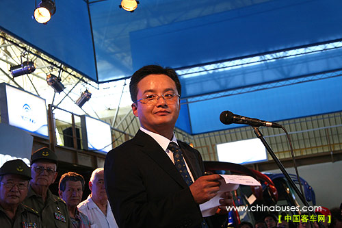 宇通集團(tuán)海外市場(chǎng)總監(jiān)秦?fù)P文在產(chǎn)品推介會(huì)上致辭