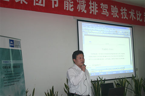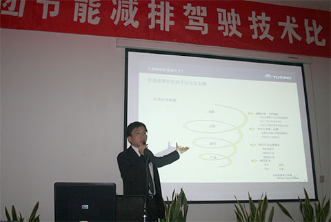 宇通博士后工作站的姜德軍工程師對(duì)與會(huì)人員特別是參賽選手進(jìn)行"宇通節(jié)油寶典"駕駛技巧方面的培訓(xùn)。