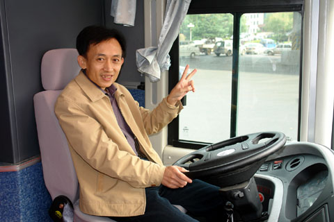 采訪期間,他和我們一起試乘了"神行劍",他也向宇通技術(shù)工程師詢問(wèn)了發(fā)動(dòng)機(jī)熱管理系統(tǒng)在節(jié)能降耗上的具體情況,當(dāng)?shù)弥|寧虎躍安裝該系統(tǒng)前后每百公里油耗節(jié)省將近3升時(shí),他不禁豎起大拇指,連連稱贊該系統(tǒng)在節(jié)油耗上的優(yōu)異表現(xiàn)。試乘之后,劉按捺不住內(nèi)心的激動(dòng),又仔細(xì)觀賞了"神行劍"與"逍遙劍"。最后,他走到"神行劍"的駕駛窗,手握方向盤,過(guò)了一把"車長(zhǎng)癮"。