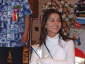:提前到達三亞的厄瓜多爾小姐和哥斯達尼加小姐11月8日第一次出現(xiàn)在大賽接待用車交接儀式現(xiàn)場,她們的提前到達使眾多在三亞焦急等待的媒體記者欣喜萬分,頓時媒體記者把兩位美麗的小姐圍個水泄不通。