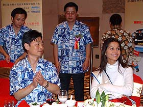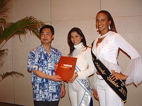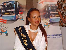 兩位小姐也被熱情的三亞所感染,在會場里不知疲倦的應(yīng)酬。在儀式上兩位小姐欣然接受了大賽指定用車制造商――中通客車公司贈送的漂亮車模,這是她們在中國的第一份禮物,所以顯得格外高興,并且在