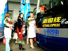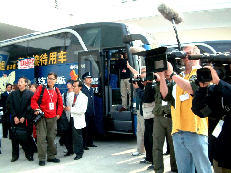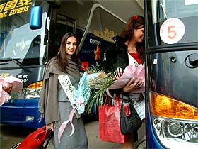 小姐們下飛機(jī)后對(duì)南北巨大的溫差好像不太適應(yīng),但是小姐們看到整齊的接待車輛-中通凱撒如同天降,好像又回到了溫暖的三亞,驚奇不已。原來,根據(jù)組委會(huì)的安排,30部中通凱撒接待用車分三批出發(fā),分往三亞、西安、上海,為接待提供最大的方便。此批車輛11月8日從中通客車公司出發(fā),提前三天到達(dá)西安,并提前兩天在西安市進(jìn)行了浩大的宣傳活動(dòng)。此批車輛完成西安的全部接待任務(wù)后將奔赴北京。