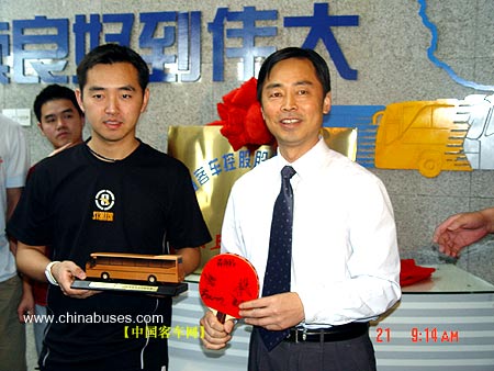 最后,當中通客車公司總經理李海平接過“大滿貫”得主孔令輝贈送的球拍,并將一個漂亮的客車車模遞給孔令輝時,現場掌聲雷鳴,幾十名現場記者的相機快門頻動,記下了這最激動的時刻。中通客車所承載的諸多榮譽和孔令輝的“大滿貫”形象相得益彰。