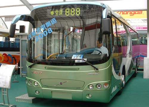 首次亮相的車風杭州DHZ6840RC客車也令人耳目一新,其大弧的前臉造型,既體現(xiàn)歐式豪華氣質(zhì),有緊貼自然,親近人性。在該款客車的性能介紹中,"地板離地高僅為350mm,并配有車身下降系統(tǒng),還能下降60-80mm"這一條尤其引人注目,在業(yè)界評論如今低地板普遍不低的聲音中,該款客車或許能為國產(chǎn)低地板客車正名。不過其發(fā)動機配置表中無論是標配的玉柴YC4110ZCQ還是選裝的康明斯EQB14011都只能達到歐1的排放標準,因此,在綠色奧運的主題下,該款車要想在北京公交市場上有所作為并不容易。