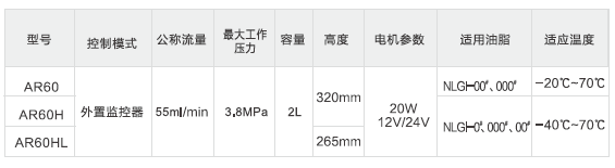 AR60系列集中潤滑系統(tǒng)為單線并聯(lián)式集中潤滑系統(tǒng),由齒輪泵、單列式單線分配器和監(jiān)控單元組成,該系統(tǒng)不僅提高潤滑泵站的吸脂性能及分油器的注脂性能,同時還解決了長期困擾業(yè)界的油箱底部油脂堆積變質(zhì)難題。