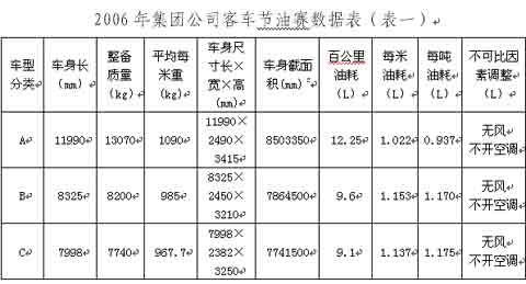 聊運集團公司領導非常重視汽車節(jié)能工作,2001年初就已制定了《集約客車的油耗定額》,并在全集團公司大力推廣了鳳凰客運公司的《客車單車油耗分析制度》。2006年、2007年舉行的汽車安全駕駛、節(jié)油操作大賽,從集團公司各基層單位選拔優(yōu)秀的節(jié)油能手參加。下面將近兩年來舉行節(jié)油賽的各種數(shù)據(jù)附上,并進行分析,以期從中找出風阻和客車自重與燃油消耗的關系。
