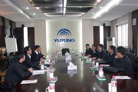 在行政樓六樓董事長會議室,袁長祥一行與宇通集團總裁湯玉祥進行了深入交流。湯總首先就河南省出入境檢驗檢疫局一直以來對宇通特別是出口業(yè)務(wù)發(fā)展所提供的支持和幫助,向袁長祥一行表示感謝。隨后,湯玉祥簡要介紹了宇通近幾年的發(fā)展情況和在行業(yè)內(nèi)的地位,特別是宇通的出口戰(zhàn)略和舉措。他說,從國內(nèi)汽車工業(yè)的出口形勢和狀態(tài)來看,客車是最有國際競爭力的產(chǎn)品,其出口前景良好?;趯χ袊褡蹇蛙嚇I(yè)、對宇通品牌負(fù)責(zé)的態(tài)度,宇通一直堅持“只把成熟產(chǎn)品銷往已做好服務(wù)、配件等工作的市場”的出口戰(zhàn)略,在產(chǎn)品出口上只做準(zhǔn)備好的產(chǎn)品和市場,雖然為此宇通暫時性丟了一些訂單,但在國際上樹立了中國客車和宇通客車的品牌,鍛煉了宇通國際化的市場能力。湯玉祥表示,雖然目前國際經(jīng)濟形勢低迷,但宇通有信心做好出口業(yè)務(wù)。