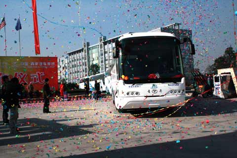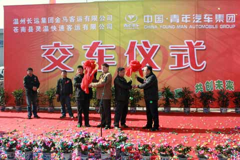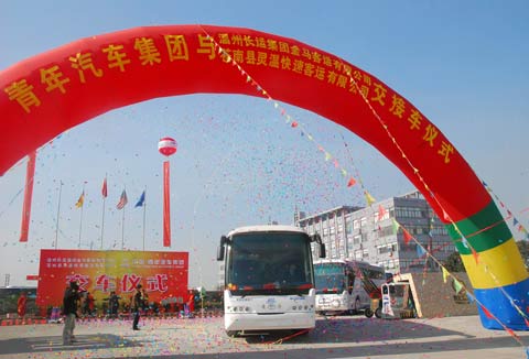 上百萬(wàn)元的高檔客車運(yùn)營(yíng)在縣際線路上,能掙到錢嗎?誰(shuí)愿意敢為人先嘗試看上去虧本的買賣?哪家客車廠又能歷經(jīng)千挑萬(wàn)選一舉 “中彩”呢?2008年12月10日,溫州蒼南縣靈溫快速客運(yùn)有限公司總經(jīng)理陳大喜臉上喜洋洋的笑臉,以及青年汽車集團(tuán)28輛豪華客車熱鬧的發(fā)車儀式,給這些問(wèn)題做了最好的解答。