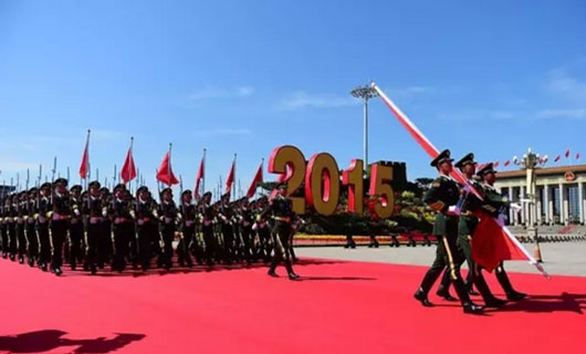 2015年9月3日,上午10點(diǎn),伴隨著56門禮炮鳴響的70聲炮響,紀(jì)念抗日戰(zhàn)爭暨世界反法西斯戰(zhàn)爭勝利70周年閱兵盛典在世界矚目中拉開帷幕。