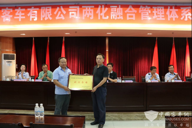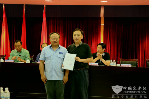 會(huì)議中,恒通客車兩化融合最高管理者何總向重慶市經(jīng)濟(jì)信息委遞交恒通客車兩化融合管理體系貫標(biāo)承諾書。