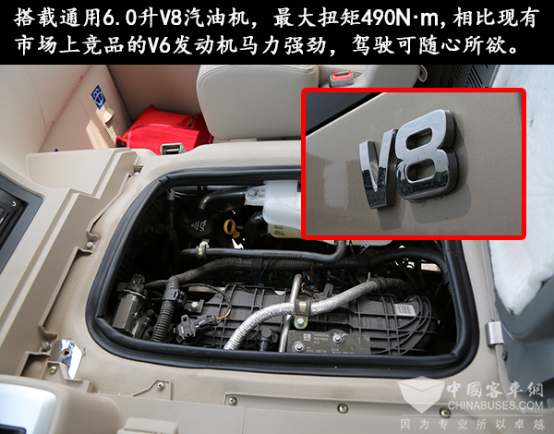 確實,在宇通試車場對T7進行實際測評時,不管是23秒的0-100公里時速的加速時間還是輕松爬上坡度為20%、相當于4層樓高的陡坡,再到把時速提至100公里后駛?cè)敫攮h(huán)跑道的那份游刃有余,V8汽油機澎湃的動力性能淋漓盡致地表現(xiàn)了出來。