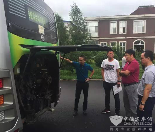恒通公司總經(jīng)理助理趙勇陪同遼源公交李總參觀樣車(chē)