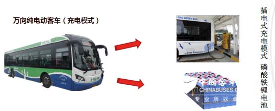 萬向純電動客車:第二批220輛采用充電模式,配備100KW交流電機,車輛的動力電池為磷酸鐵鋰電池,整車電池電壓540V,電池能量324千瓦/時,在10余條主城區(qū)公交線路上運營,目前總運行293萬公里,平均日行駛里程為180公里左右,充電時間在3-4個小時左右,平均電耗每百公里在107度左右,故障為1.38%,遠(yuǎn)低于常規(guī)公交車。