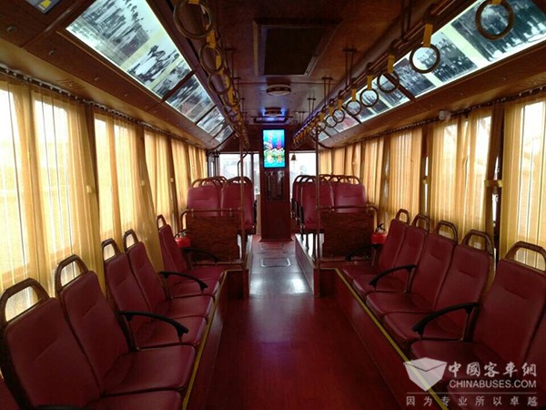 在保定公交停車場,記者看到了鐺鐺車,該車身長12米,車體門窗為木紋條理,頭尾中央部位各裝有一個火車頭大燈,古香古色。駕駛員身穿紅色上衣,衣領(lǐng)、衣襟、袖口均鑲有金色仿古圖案,下身穿藍(lán)黑色長褲,頭戴深藍(lán)色禮帽,整體呈現(xiàn)復(fù)古風(fēng)情,為乘客營造了一場接近真實(shí)的穿越之旅。