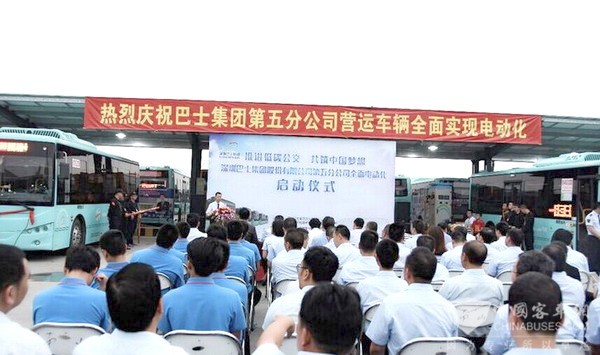 2017年5月,深圳巴士集團第五公司率先實現(xiàn)全面電動化,并于5月10日,舉行了全面電動化的啟動儀式。深圳巴士集團副總經(jīng)理袁虎勇,深圳南山區(qū)交通局局長高長軍等人出席了儀式。