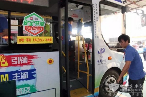 據(jù)悉,目前泉州公交擁有純電動(dòng)公交車90輛,其中70輛為中車電動(dòng)8米車型。該車型搭載中車獨(dú)有的“高鐵級(jí)”大扭矩永磁同步電機(jī),動(dòng)力性能好;搭載的T-power純電動(dòng)驅(qū)動(dòng)系統(tǒng)使能量轉(zhuǎn)化率更高;同樣“高鐵級(jí)”的“云智通”車輛智能管理平臺(tái)實(shí)現(xiàn)驅(qū)動(dòng)系統(tǒng)及車輛狀態(tài)的實(shí)時(shí)監(jiān)控,達(dá)到雙重安全保障。此次競(jìng)賽也通過“云智通”進(jìn)行車輛信息采集,用來作為評(píng)判駕駛員成績(jī)的重要依據(jù)。