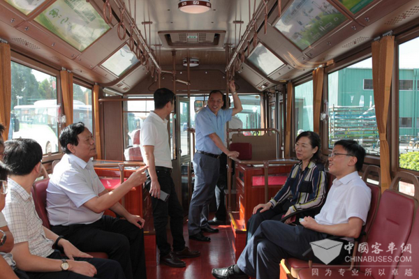 坐在參觀的仿古鐺鐺車上,魏銀倉董事長向鄭廳長介紹了銀隆純電動客車的情況。近年來在北京、邯鄲、西安、珠海等全國40多個城市取得良好的運營業(yè)績,同時在2014APEC亞太峰會、2016第二屆中美低碳峰會等多項國際活動上表現(xiàn)出絕佳的性能。