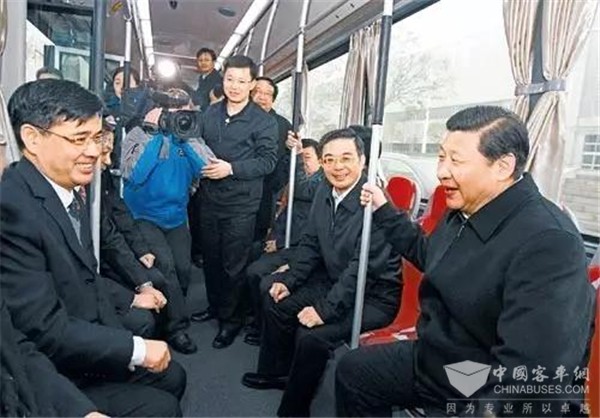 2011年,習(xí)近平同志視察株洲所,并體驗(yàn)中車電動新能源公交車▼