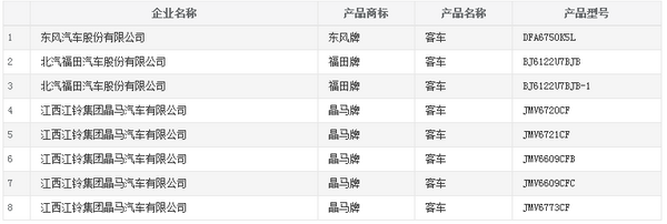 客車網(wǎng)通過(guò)分析第301批目錄發(fā)現(xiàn),申報(bào)的客車產(chǎn)品中,江鈴晶馬共申報(bào)了8款產(chǎn)品位列第一,包括5款傳統(tǒng)客車和3款客車底盤。宇通客車和安凱客車都申報(bào)6款產(chǎn)品位列第二,宇通申報(bào)了3款新能源客車和3款校車;安凱客車申報(bào)了5款新能源客車和1款純電動(dòng)客車底盤。中車電動(dòng)、申龍客車、廣西源正申報(bào)了4款客車產(chǎn)品為例第三。中通客車、青年客車、南京金龍、山西新能源、石家莊中博等車企也都申報(bào)了客車產(chǎn)品。