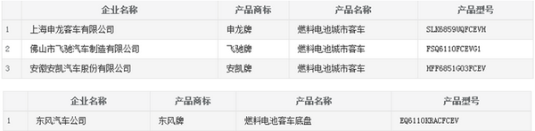 安凱、申龍、飛馳三款氫燃料電池客車上榜
