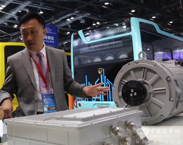 此次展出的聯(lián)孚HKC6123CHEV混合動(dòng)力公交車和HKC6110BEV純電城市公交車車型大氣敞亮,外觀明快亮麗,內(nèi)飾簡(jiǎn)潔大方,設(shè)計(jì)科技感十足,最引人注目的是,這家企業(yè)的展臺(tái)比其他客車企業(yè)多了一些展示產(chǎn)品:電機(jī)、電控、太陽能板。