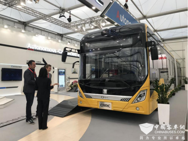 客車網(wǎng)特約編輯現(xiàn)場看到,中車電動針對歐洲高端市場研發(fā)的18米純電動“智能輔助駕駛”BRT客車,外形高大,充滿科技感。據(jù)展位工作人員介紹,該車型是軌道交通技術嫁接到“智能駕駛”領域的前沿代表;該車運用快充方式,外觀時尚大氣,載客可達160人,整車輕量化高強度鋼,車輛儀表觸摸屏,并搭載中國中車自主研發(fā)的360度環(huán)視監(jiān)控系統(tǒng)、自適應智能駕駛、車道偏離報警、防碰撞預警等前沿技術,還具備自動滅火等多項主被動安全保障。