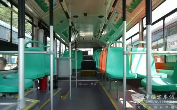 揚(yáng)子江雙源無(wú)軌電車安裝有空調(diào)設(shè)備,扶手上有皮套,功能更加完善,采用氣囊減震及防抱死剎車系統(tǒng),乘坐更平穩(wěn)更安全,并且配備有行車記錄儀、監(jiān)控?cái)z像頭,車頂“大辮子”旁也安裝有攝像頭,駕駛員在駕駛位就可以看到車頂部情況等。