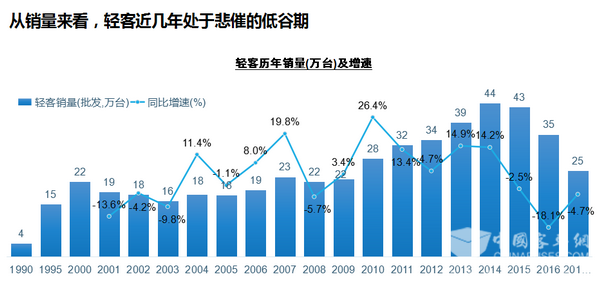 對(duì)于輕客市場前景,謝國平認(rèn)為,政策沖擊所帶來的市場低谷終將過去,2018年市場有望恢復(fù),但增長空間依然受限。