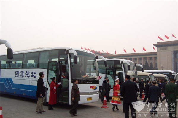 30輛45座福田歐輝客車為2005年兩會代表和委員提供專項服務保障